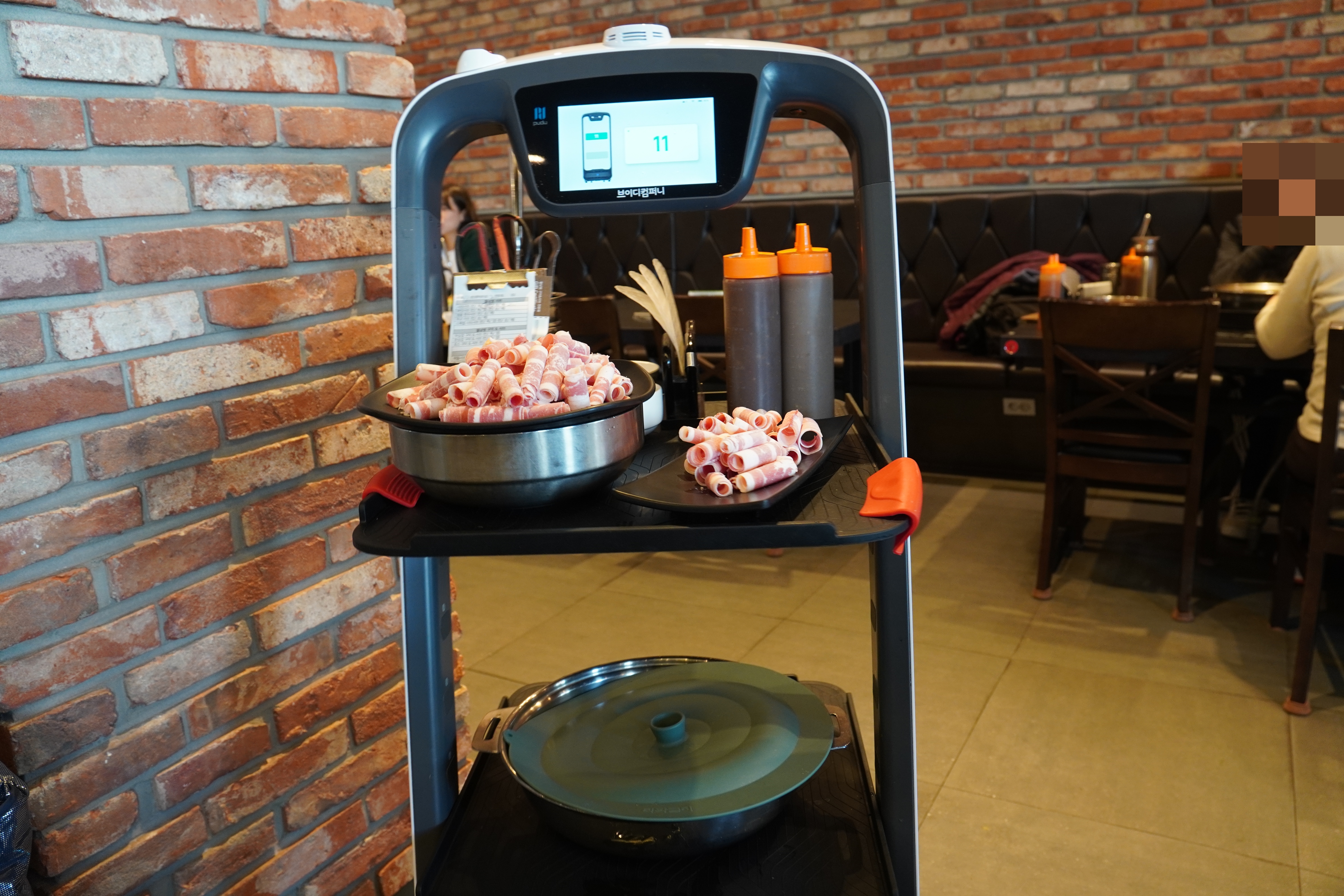 주문 후 잠시 기다리니 사진처럼 서빙로봇이 자리로 가져다줍니다. 요즘 서빙로봇 사용하는 곳이 많던데 사용하는 걸 봐도 정말 편리한지는 잘 모르겠네요.