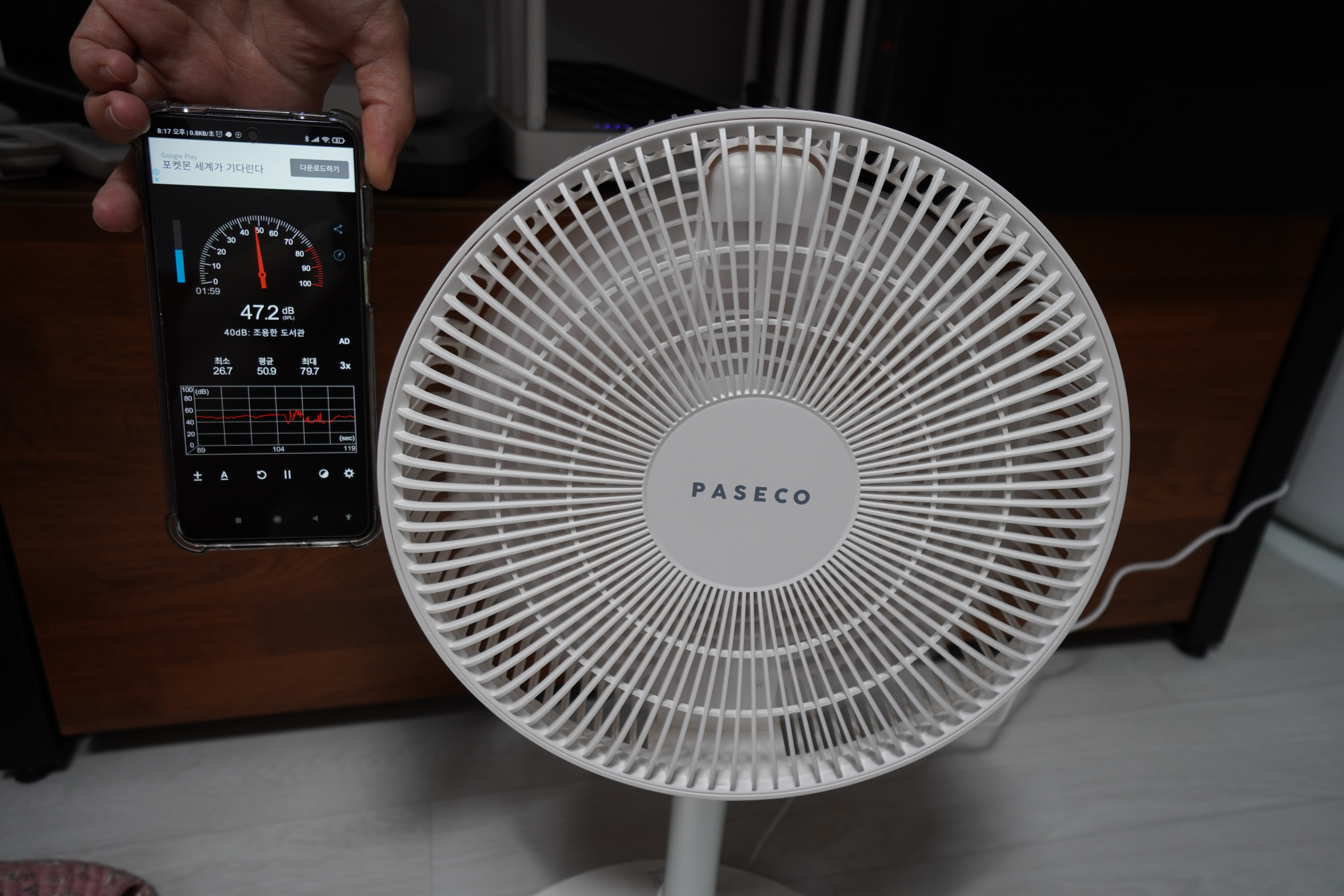 BLDC모터를 사용해서 정말 조용하고 광고하고 조용하다는 후기가 많아서 한번 측정해봤습니다. 8단 가장 높은 바람 세기에서는 47데시벨 정도 나옵니다. 요즘 선풍기들이 대부분 BLDC모터를 사용해서 그런지 그냥 일반 써큘레이터 소음 같습니다.