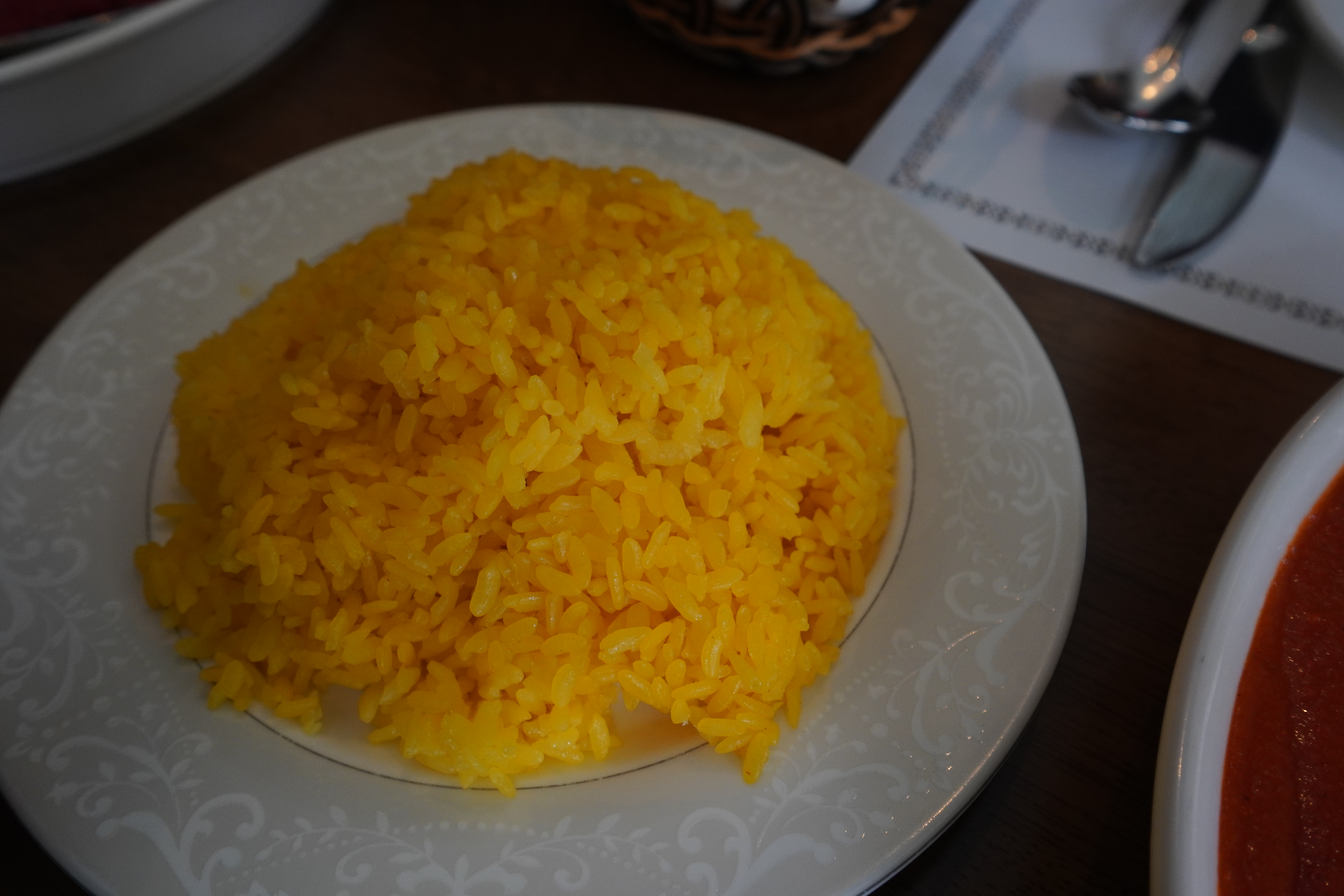 난만 주문하기 아쉬워서 주문한 강황밥입니다. 강황을 넣어서 그런지 밥이 상당히 꼬들꼬들합니다. 밥보단 난이 커리와 먹기에 더 맛있지만 강황밥도 강황밥만의 매력이 있으니 같이 주문하시면 더욱 좋을 것 같습니다.