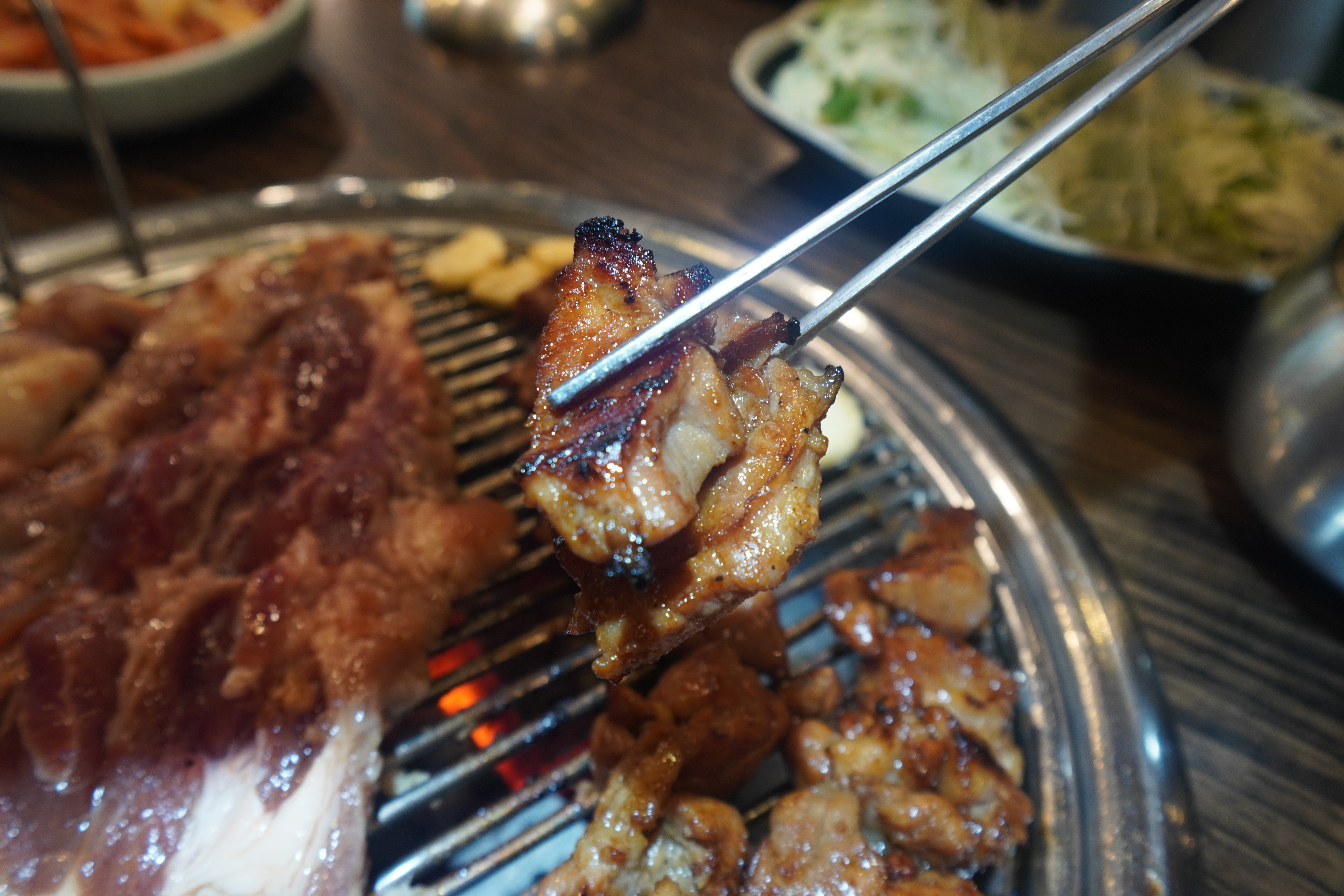 노릇 노릇 굽다보니까 생긴게 양념 닭갈비 느낌이 나기도 합니다. 가격이 저렴한 만큼 직접 구워야하는데 지나가는 사장님이 보시더니 정말 잘 구웠다고 웃으면서 한마디 해주시네요. 사진으로 보니까 군침도네요.