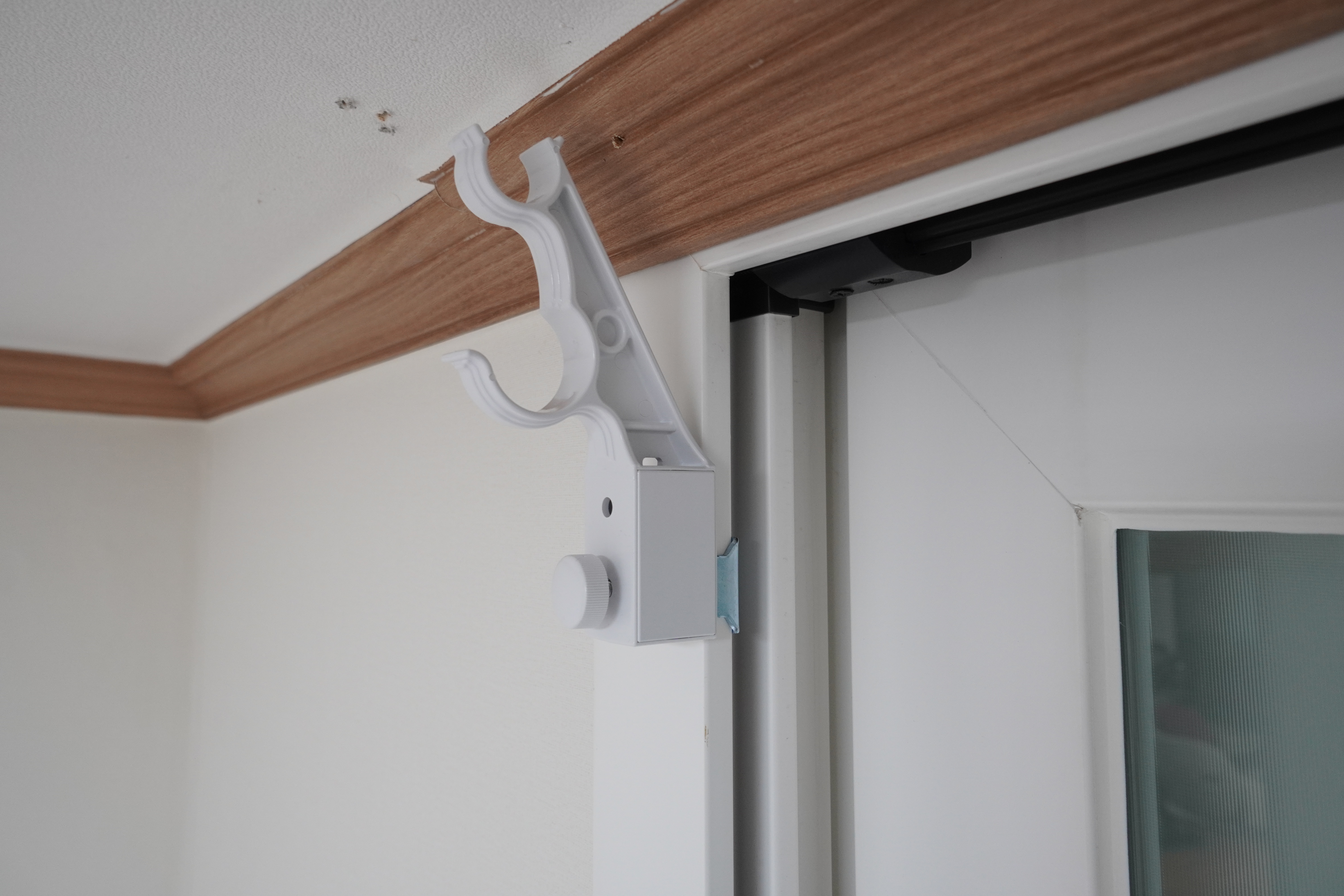 저희 집 창문은 위쪽에 창틀이 있어야 하는 자리까지 몰딩이 되어있습니다. 그래서 창문형 에어컨 설치할 땐 윗부분 고정하는데 문제가 있었고 현재는 커튼봉 설치하는데 문제가 있었습니다.